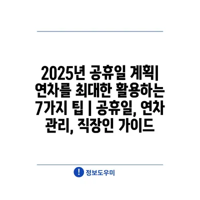 2025년 공휴일 계획| 연차를 최대한 활용하는 7가지 팁 | 공휴일, 연차 관리, 직장인 가이드