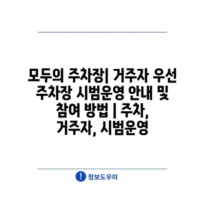 모두의 주차장| 거주자 우선 주차장 시범운영 안내 및 참여 방법 | 주차, 거주자, 시범운영