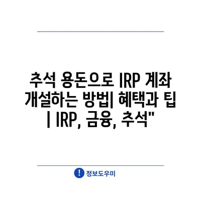 추석 용돈으로 IRP 계좌 개설하는 방법| 혜택과 팁 | IRP, 금융, 추석”