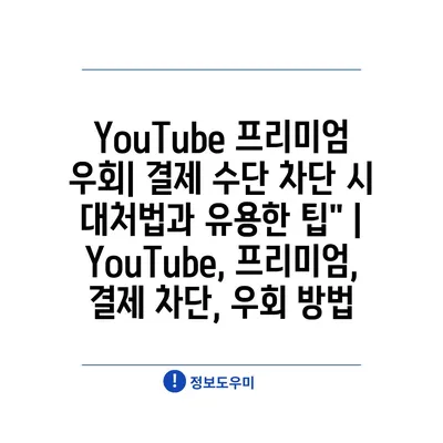YouTube 프리미엄 우회| 결제 수단 차단 시 대처법과 유용한 팁” | YouTube, 프리미엄, 결제 차단, 우회 방법