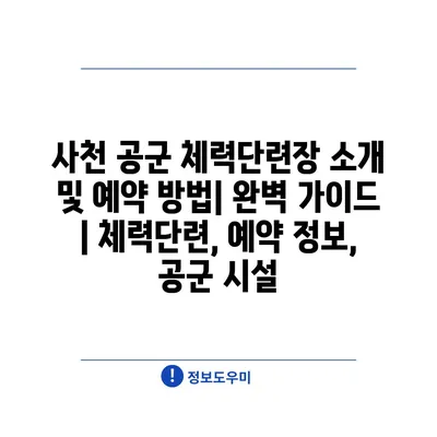 사천 공군 체력단련장 소개 및 예약 방법| 완벽 가이드 | 체력단련, 예약 정보, 공군 시설