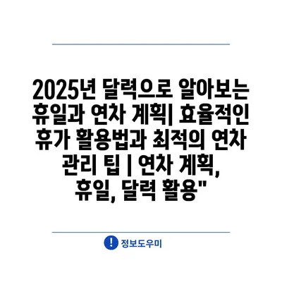 2025년 달력으로 알아보는 휴일과 연차 계획| 효율적인 휴가 활용법과 최적의 연차 관리 팁 | 연차 계획, 휴일, 달력 활용”