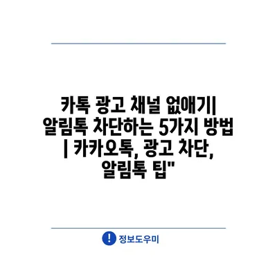 카톡 광고 채널 없애기| 알림톡 차단하는 5가지 방법 | 카카오톡, 광고 차단, 알림톡 팁”