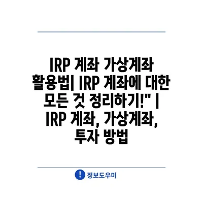 예금보험으로 떠는 IRP 계좌, 안전한 노후 준비를 위한 5가지 팁 | 재테크, 노후 대비, 금융 가이드”