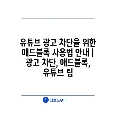 유튜브 광고 차단을 위한 애드블록 사용법 안내 | 광고 차단, 애드블록, 유튜브 팁